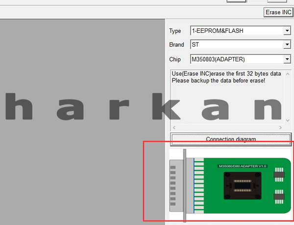 Poprzez podłączenie do złącza DB25,umożliwia kasowanie pamięci typu M35080/D80